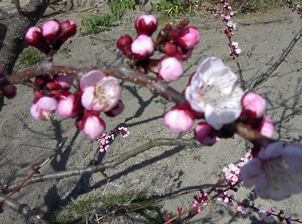 ウチのあたりでは・・・梅→杏→桜→桃→りんご・・・って順番で花が咲きます。